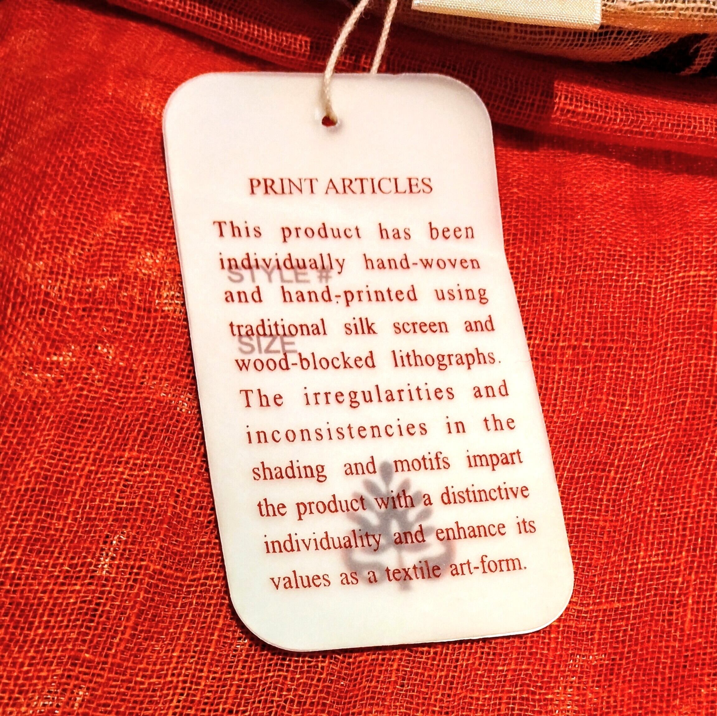 このストールは、伝統的なシルクスクリーンと木版リトグラフを使用して、1枚1枚手織りされています。