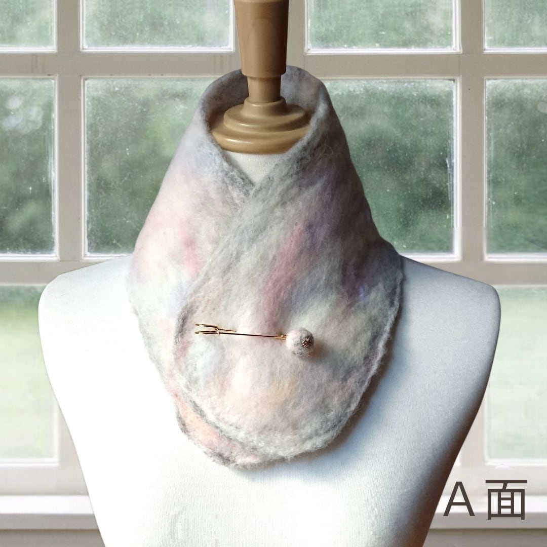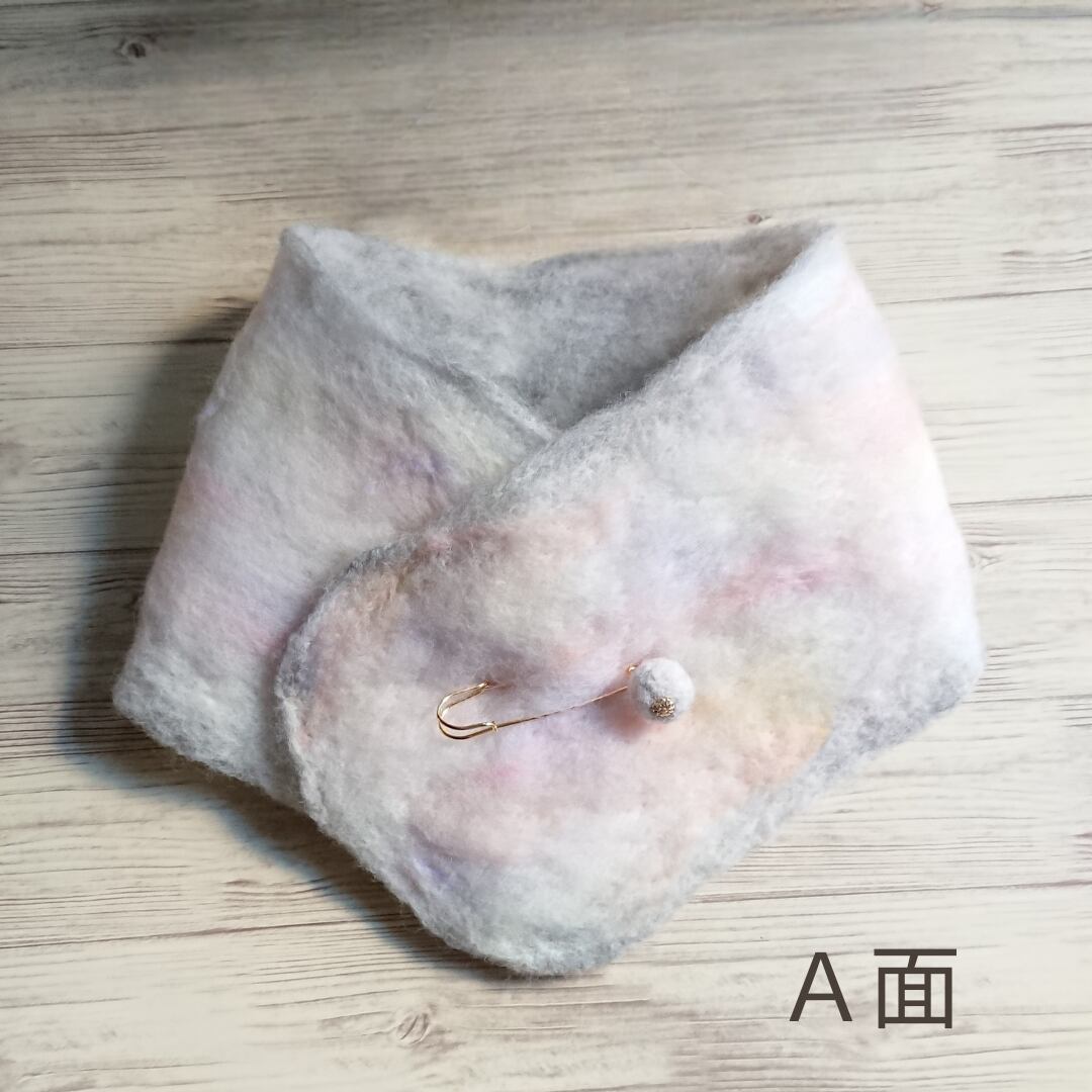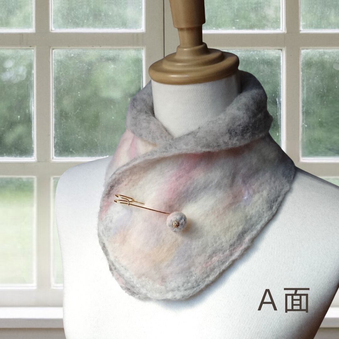 羊毛フェルトマフラー S グレーパステルMIX(リバーシブル)