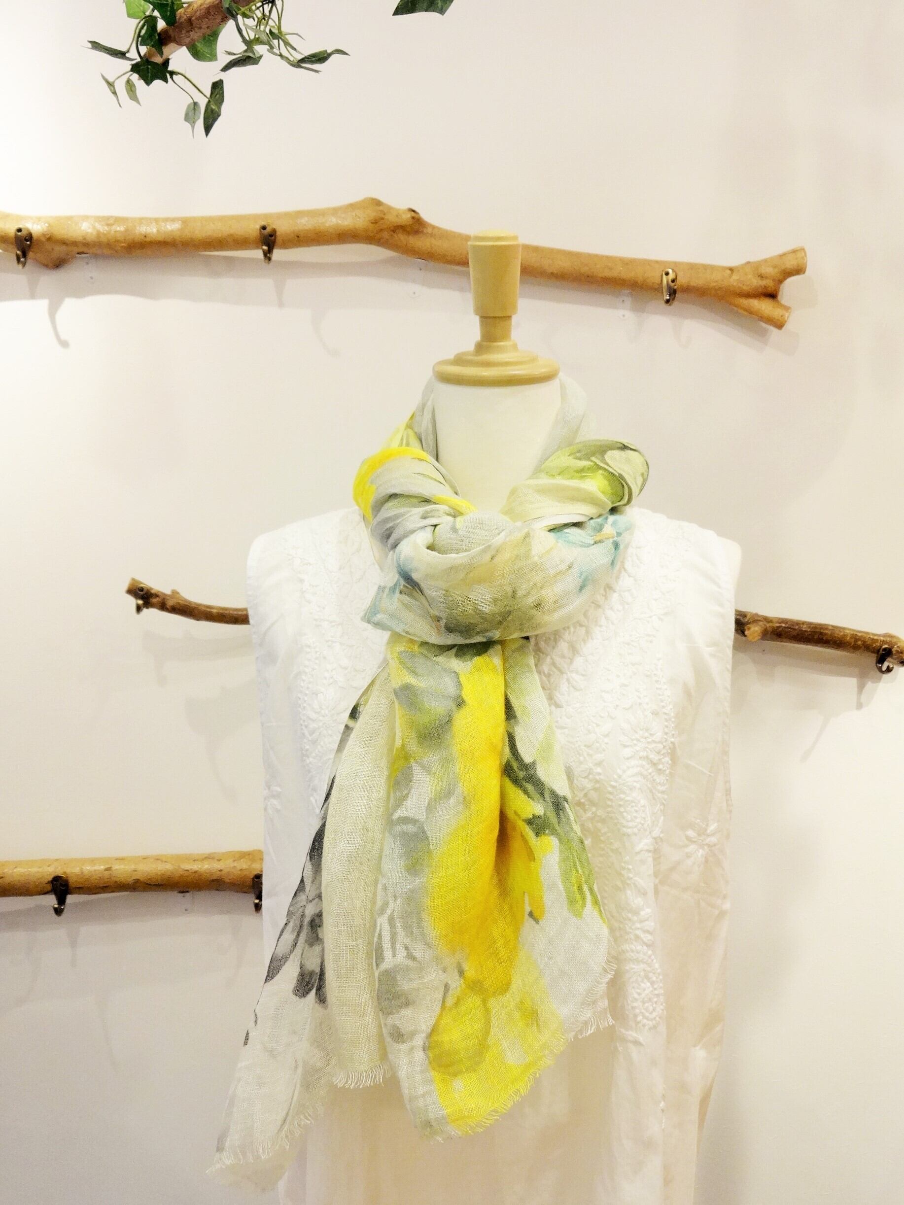 色のきれいなデジタルプリントのリネンストールです。