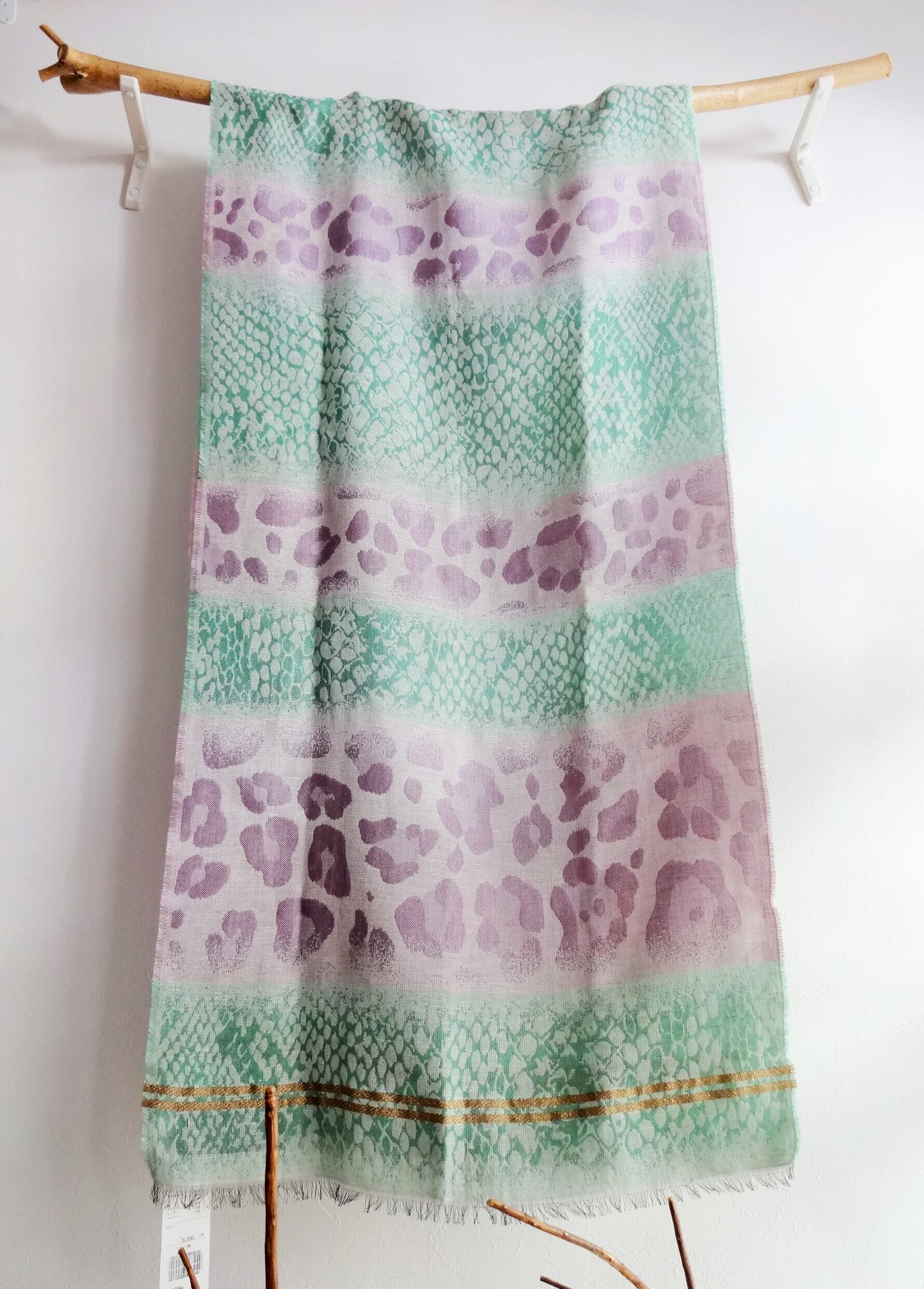 フランス製 艶めくラベンダーとグリーンのレオパード織柄ストール