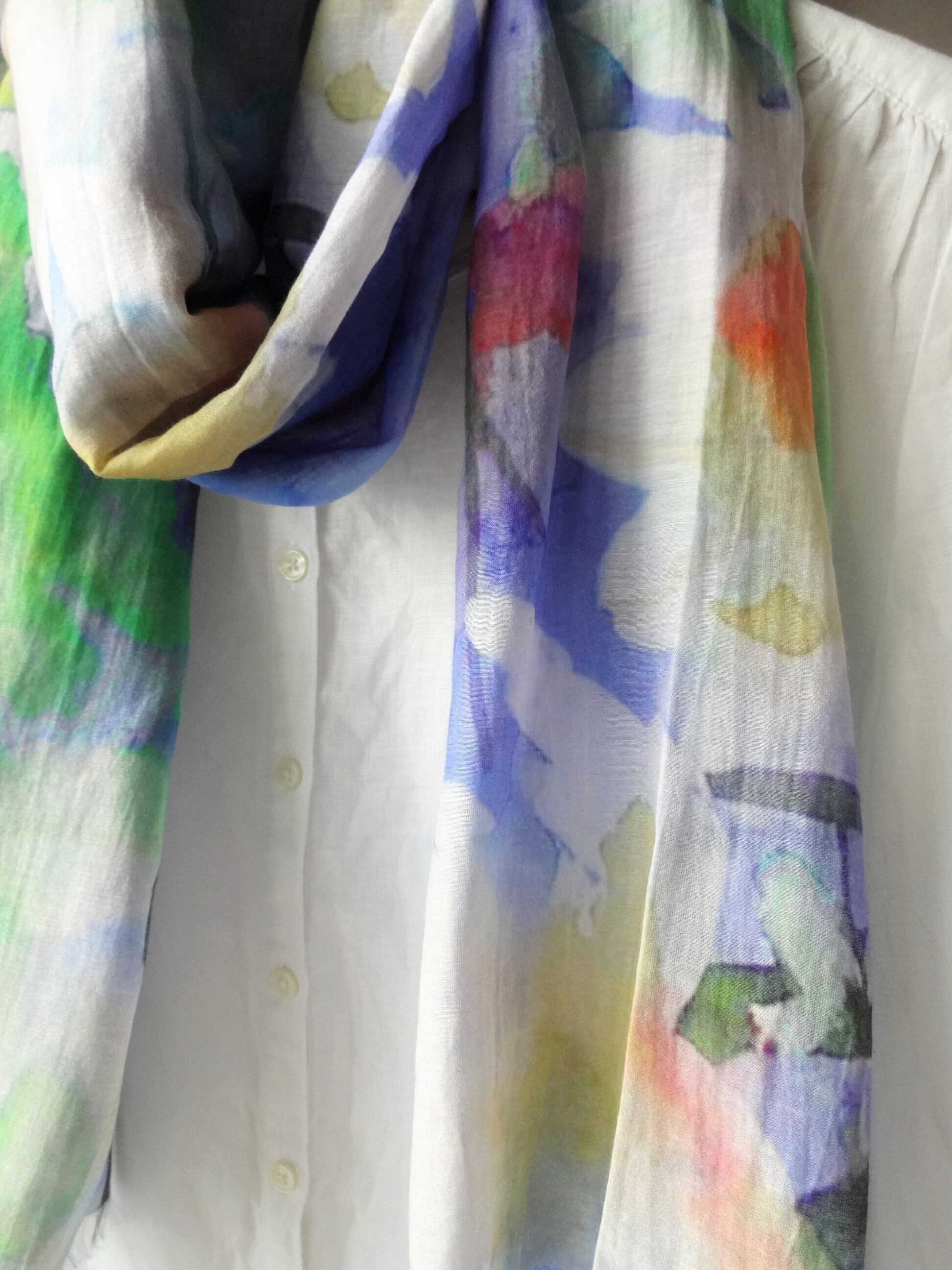 デジタルプリント水彩画風ストール ブルー系ミックスカラー