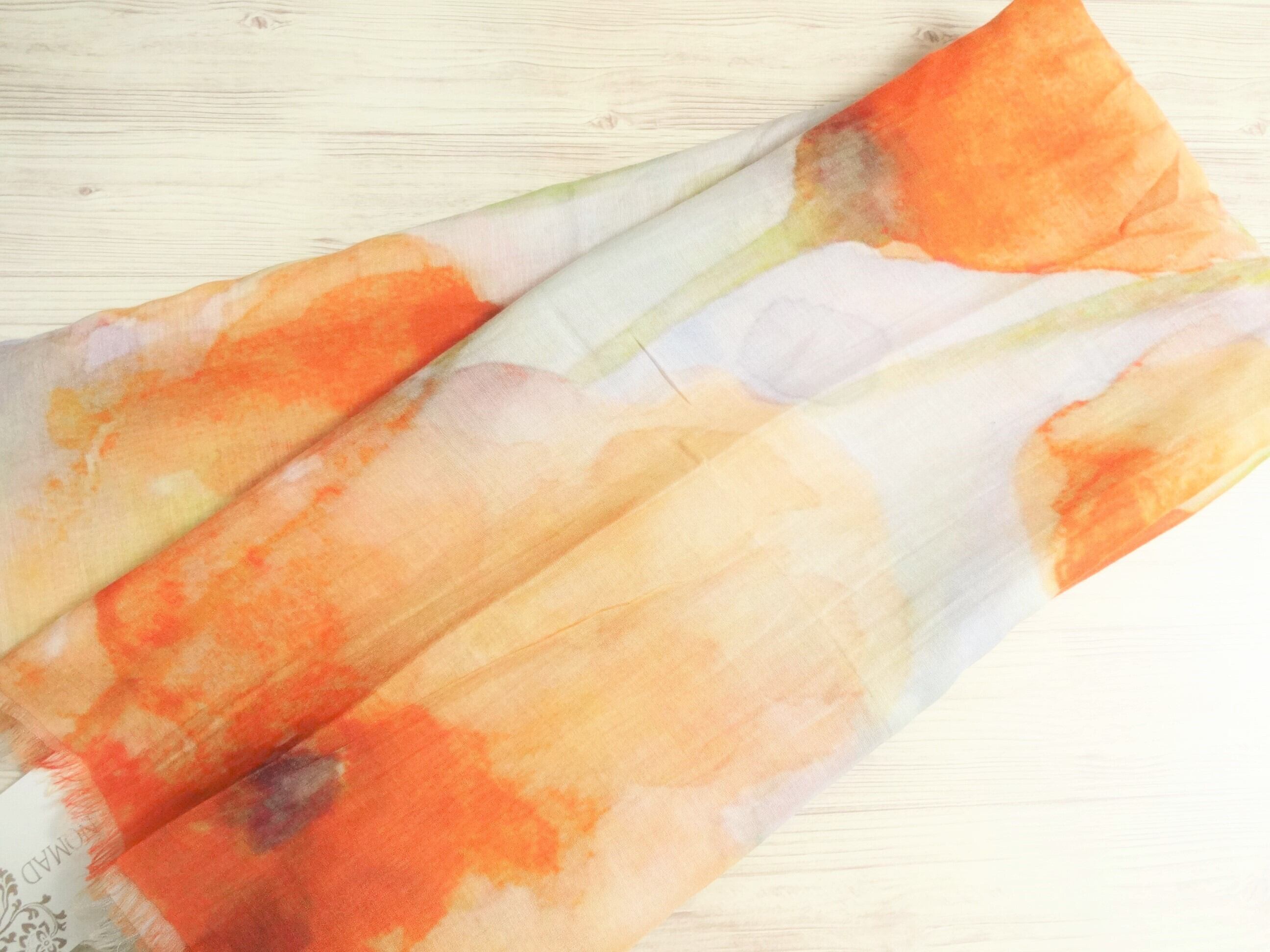 デジタルプリント水彩画風ストール オレンジフラワー