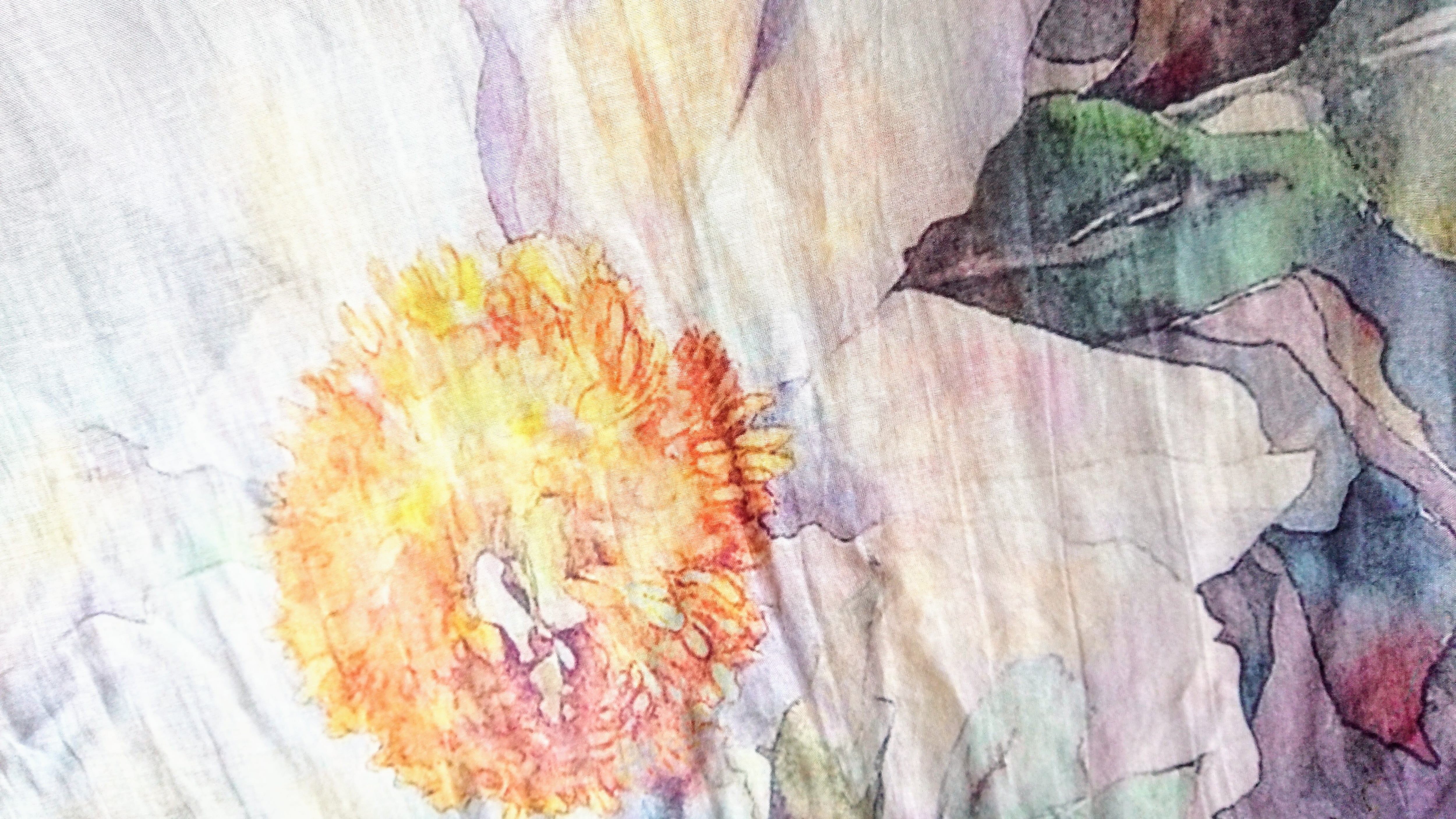 グレイッシュイエローのマーガレット デジタルプリント シルクコットンストール
