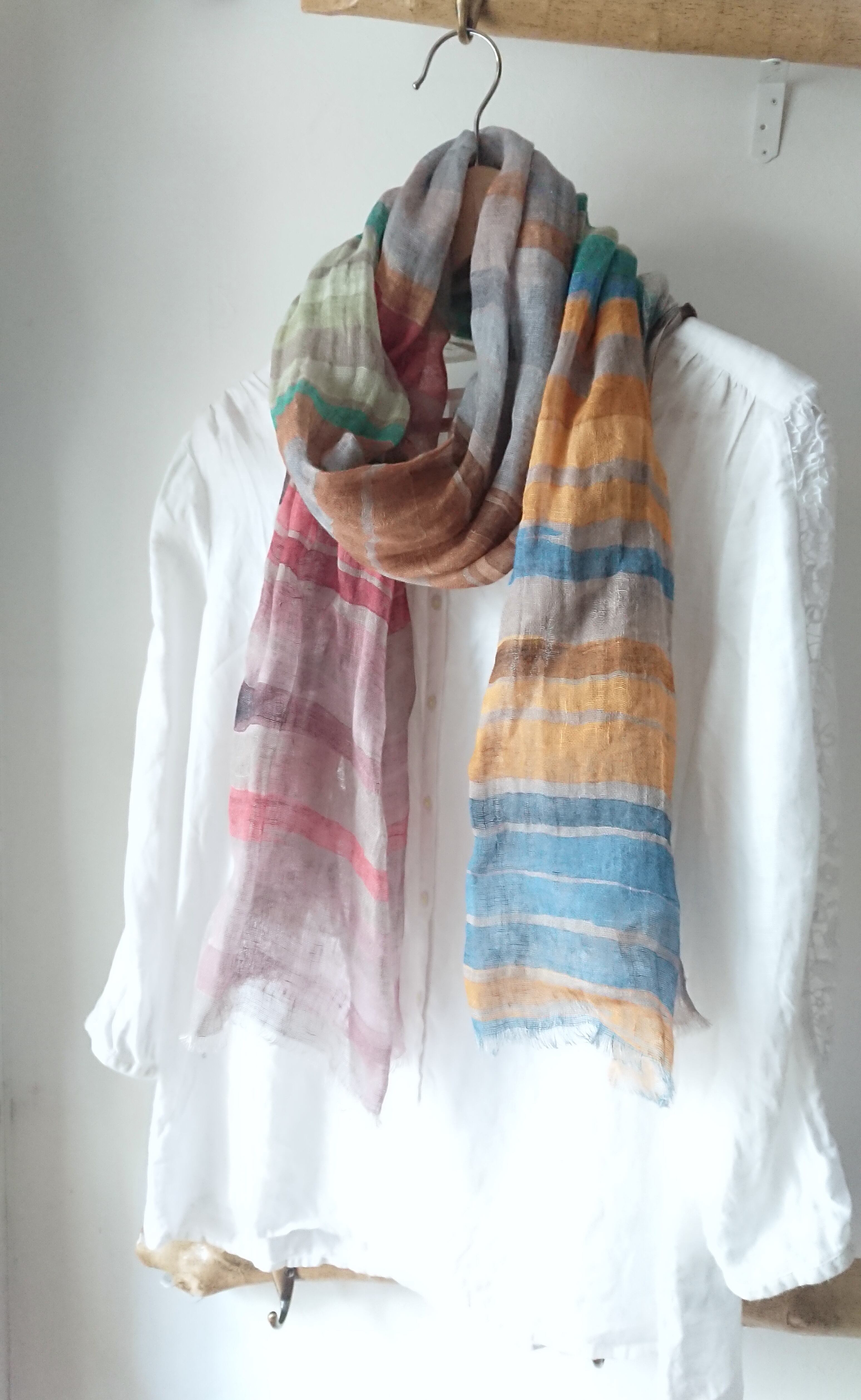 筆で描いたような、ランダムなボーダーで、落ち着いた色合いの中に遊び心が垣間見えます。