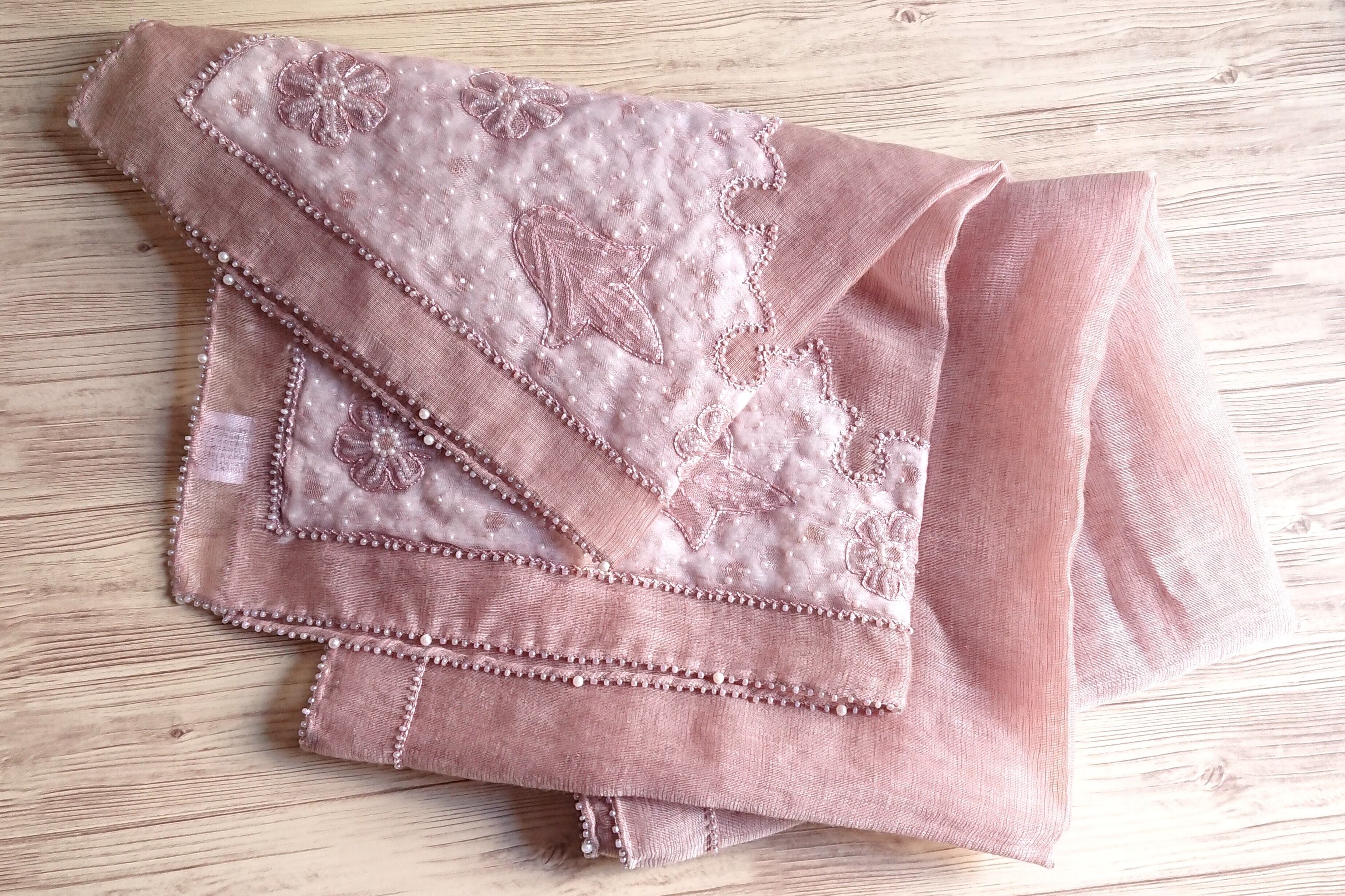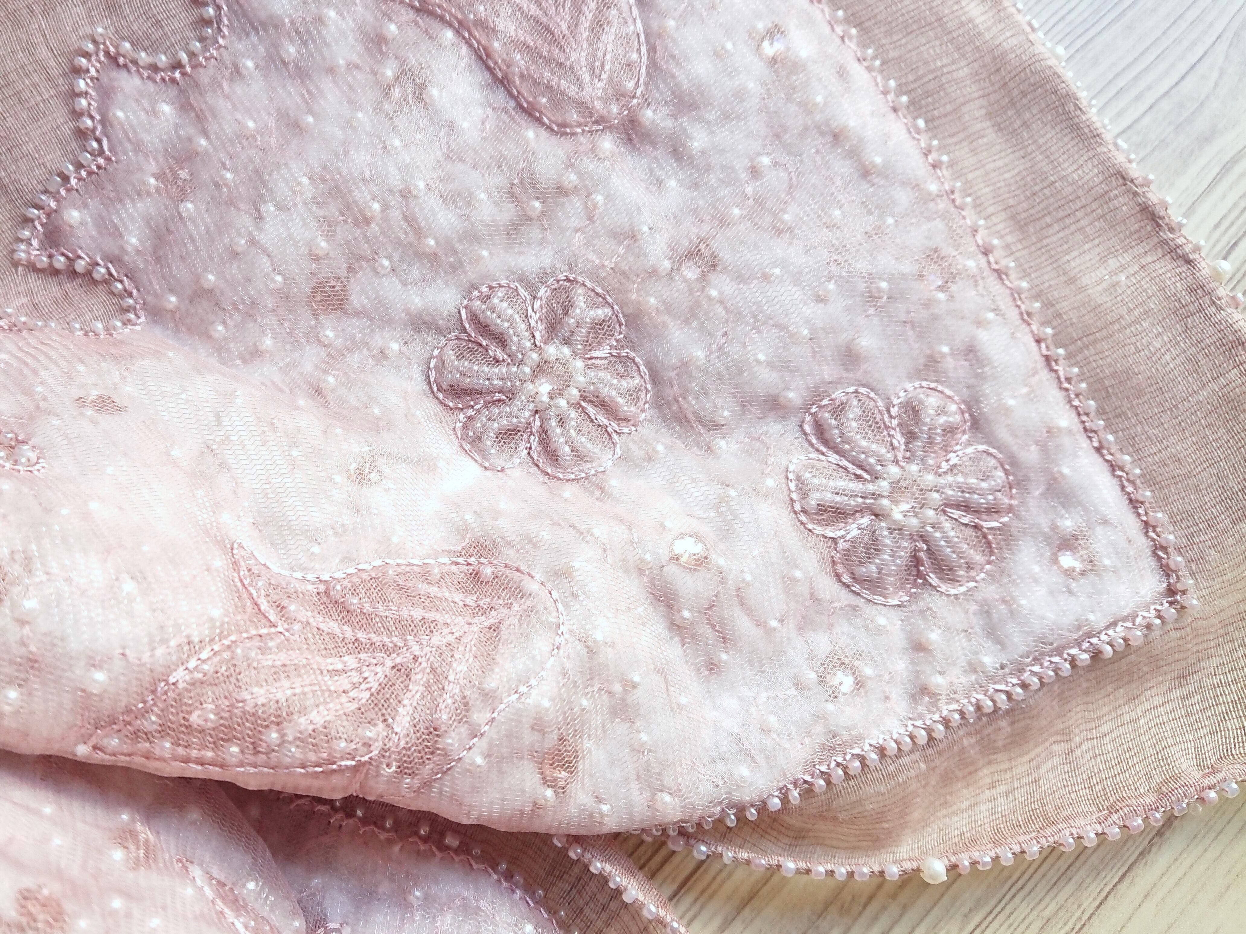 ピンクとパールビーズの大人のパーティーショール ウールシルク