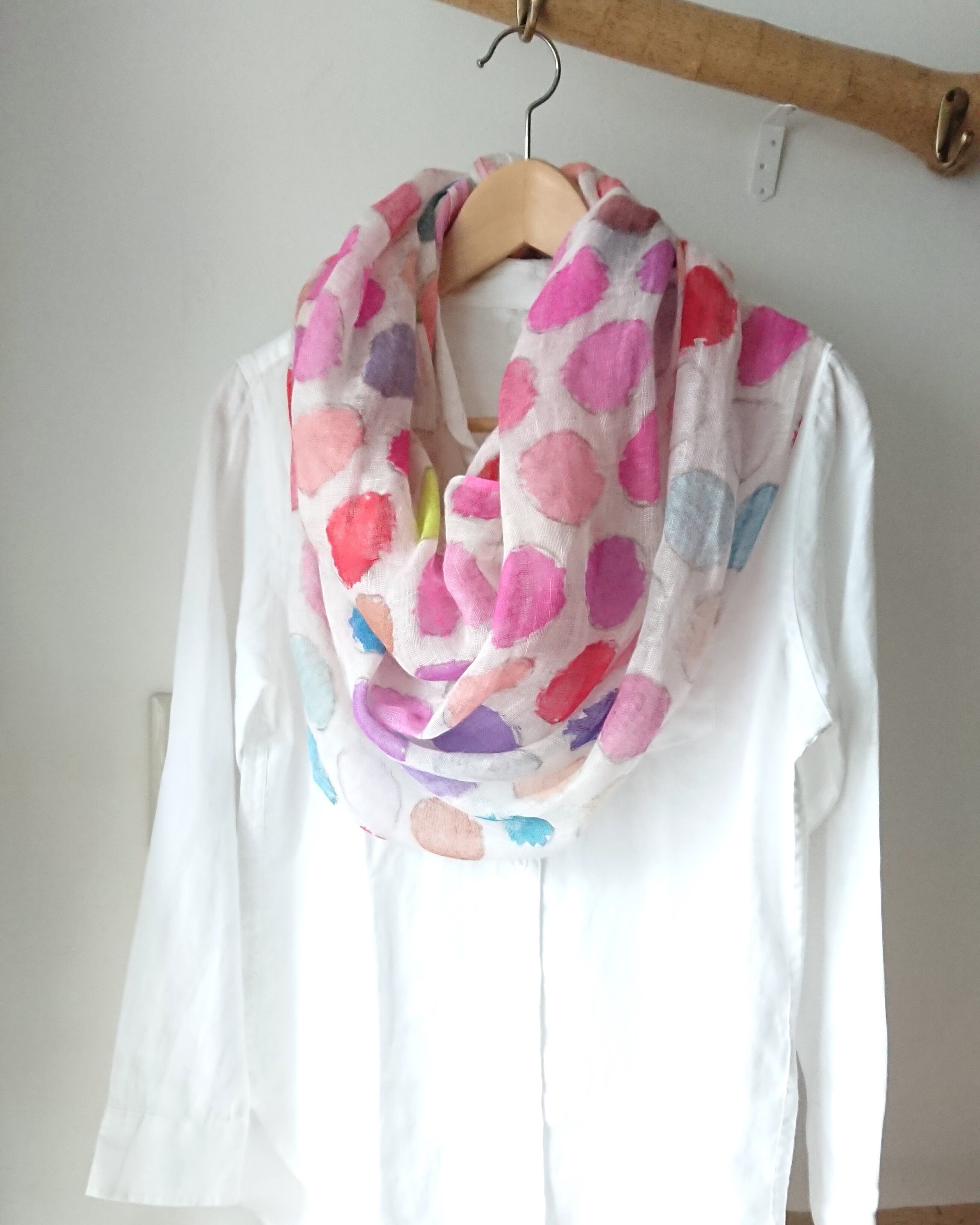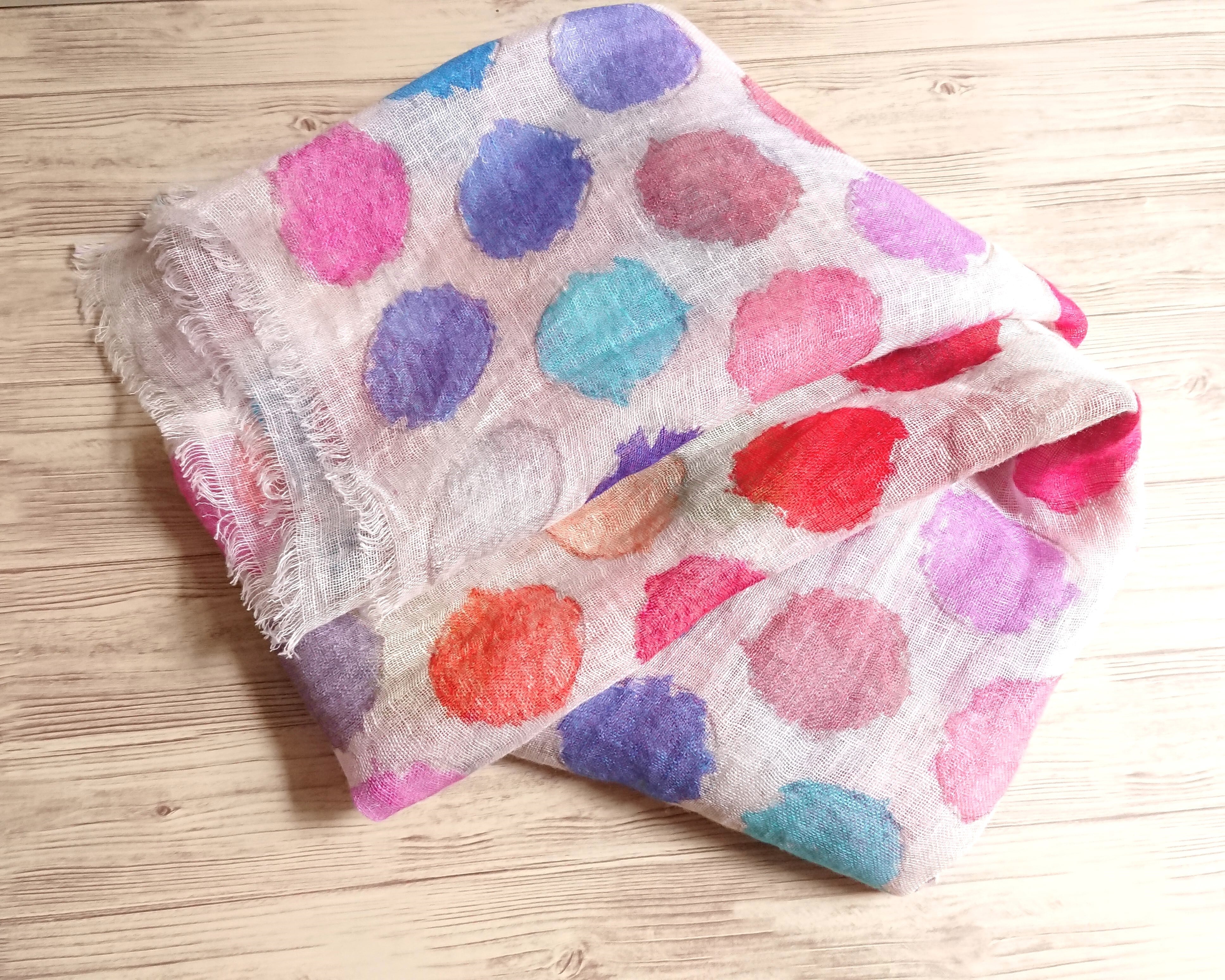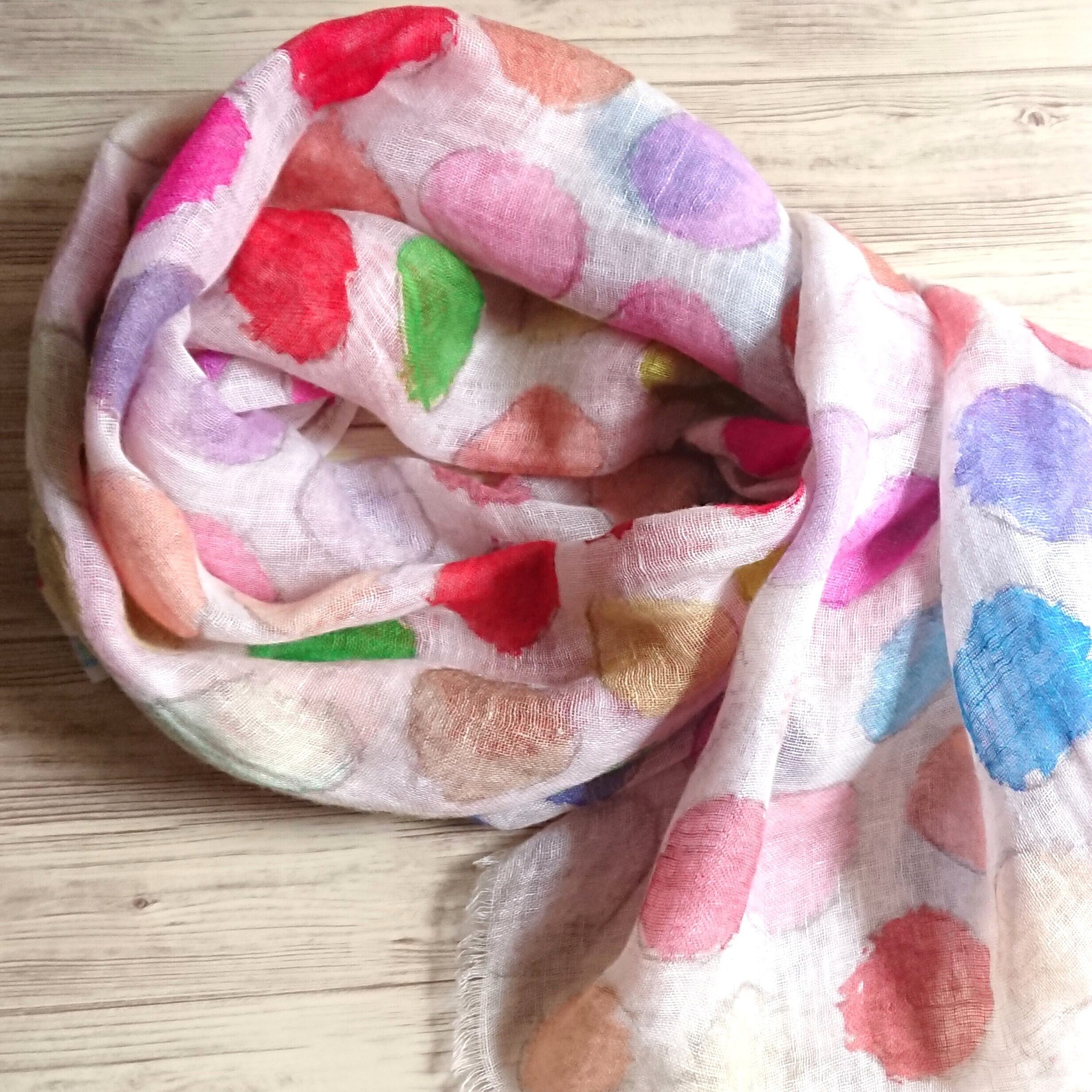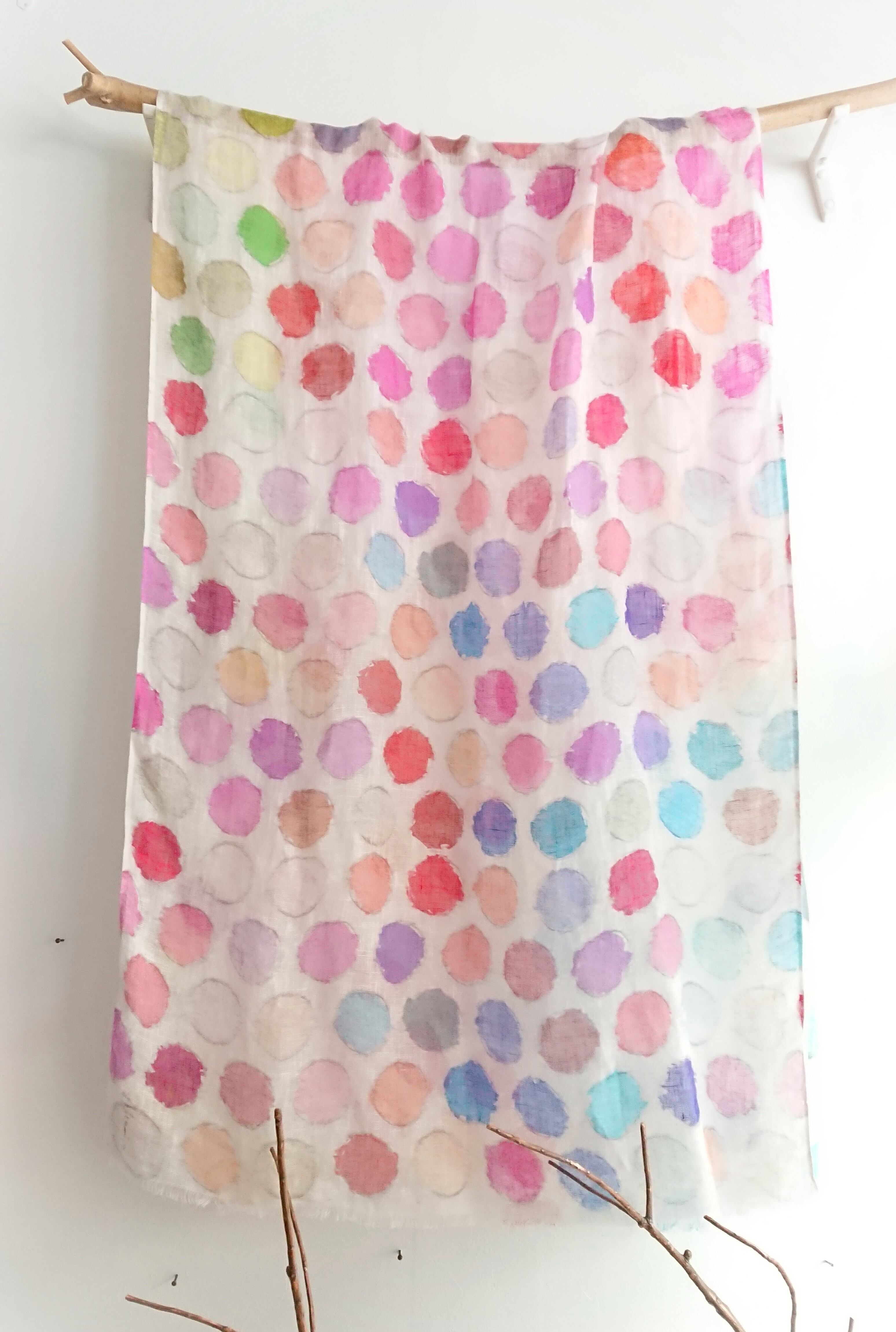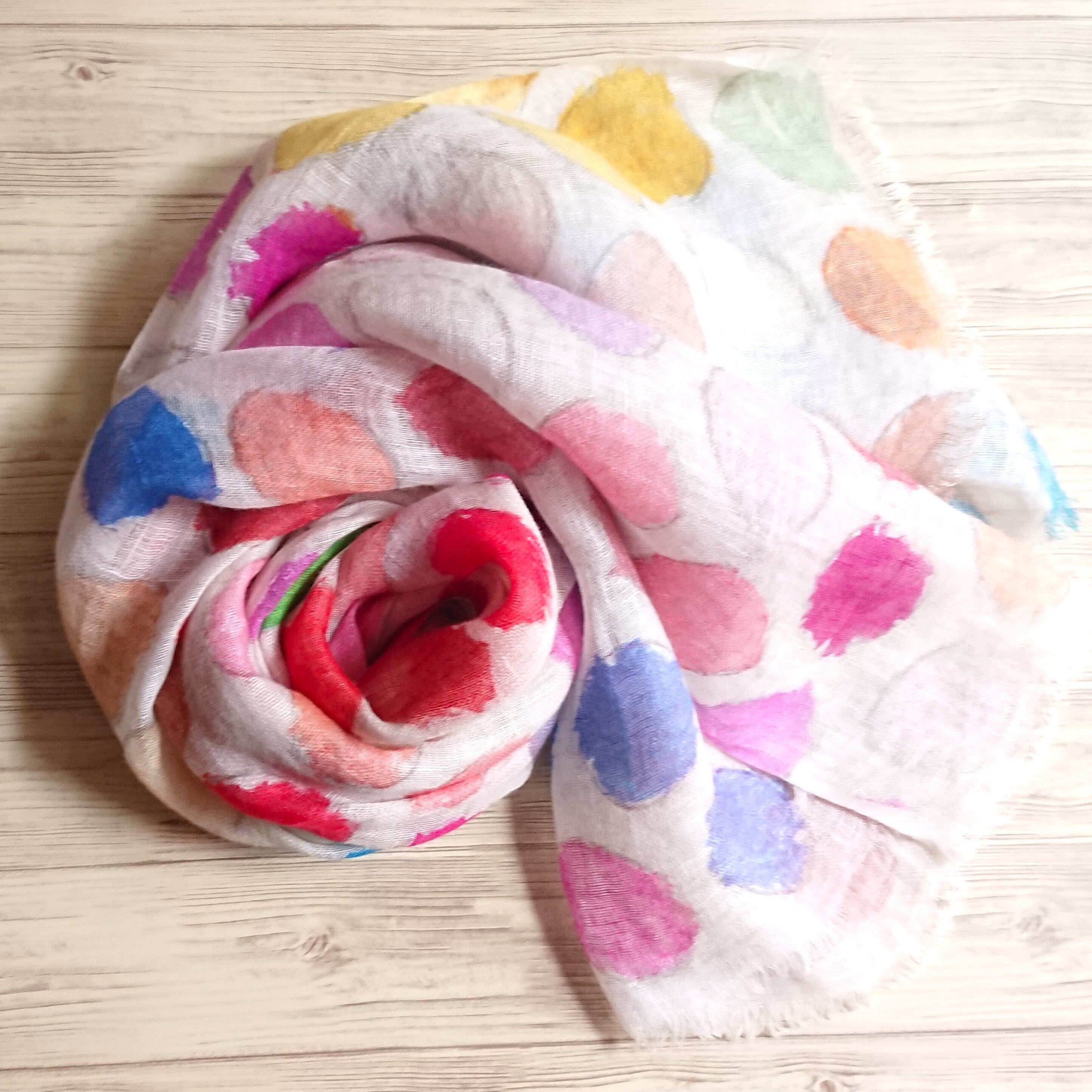 カラフルドット ドローイング リネンデジタルプリントストール