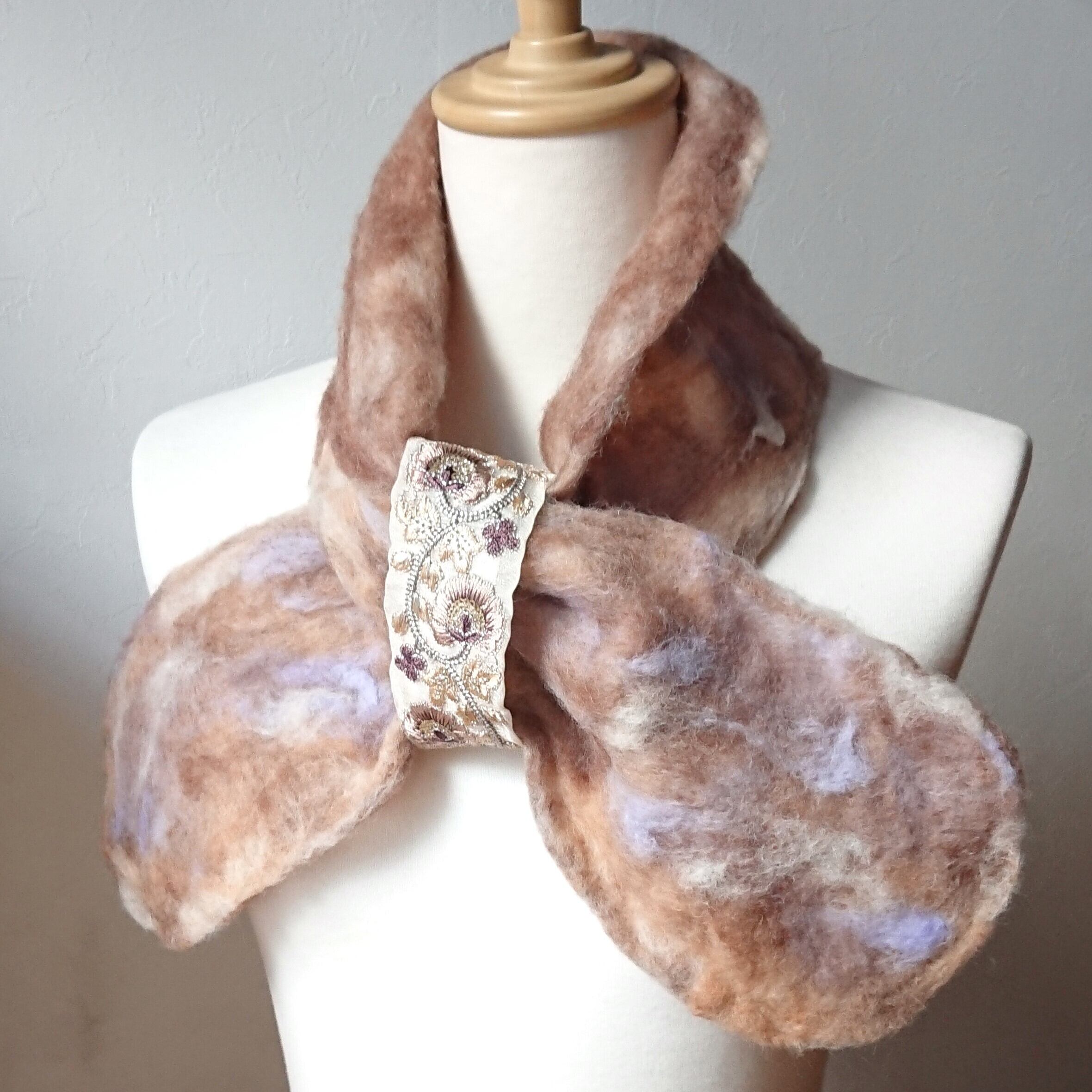 羊毛フェルトマフラー L ベージュ・ラベンダー